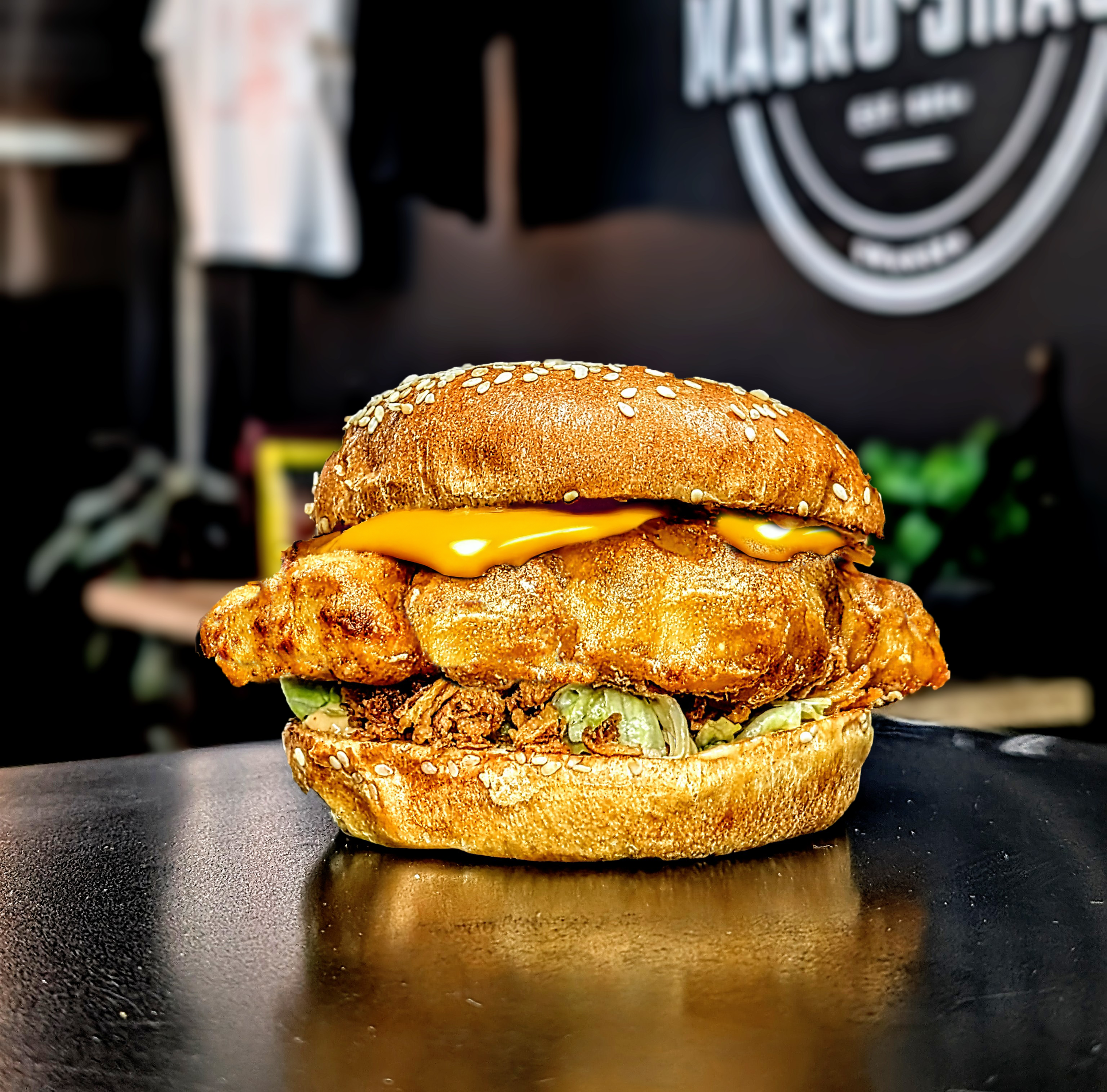 Crispy buttermilk chicken fillet topped with melted cheese, lettuce, crispy onions and high-protein peri mayo — crunchy, juicy and full of flavour.